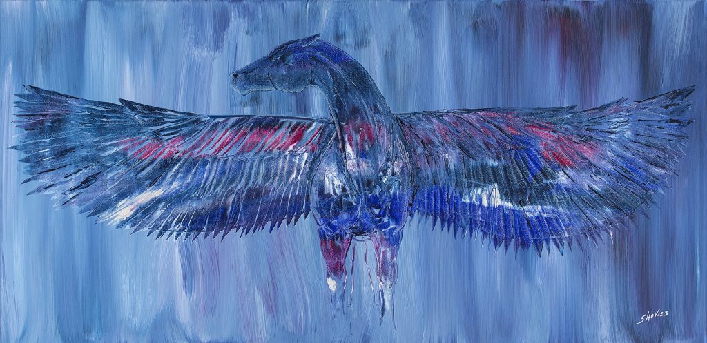 Zu jedem Gemälde gehört auch ein von mir selbst geschriebenes Gedicht, das von der Entstehung und dem Entstehungsprozess des Bildes erzählt. Bild und Wort ergänzen sich gegenseitig. Zusammen bilden sie eine starke Verbindung und machen sich gegenseitig größer.